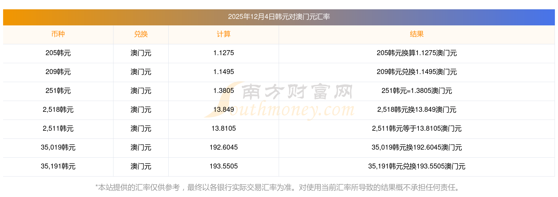 新汇率调整 今天4韩元兑换澳门元汇率是多少? 12-4