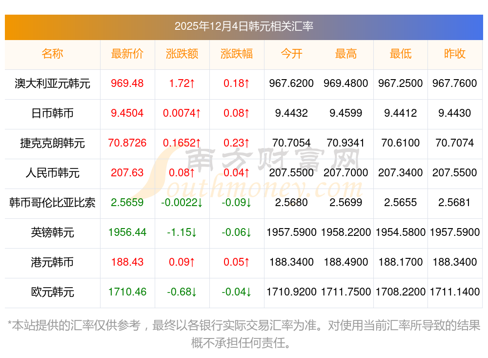 南方财富网为您提供韩元对澳门元汇率最新价格详情。