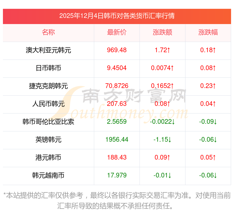 2025年12月4日韩币相关汇率查询