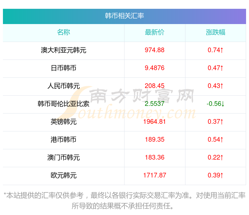 南方财富网为您提供韩币对卢布汇率最新价格详情。