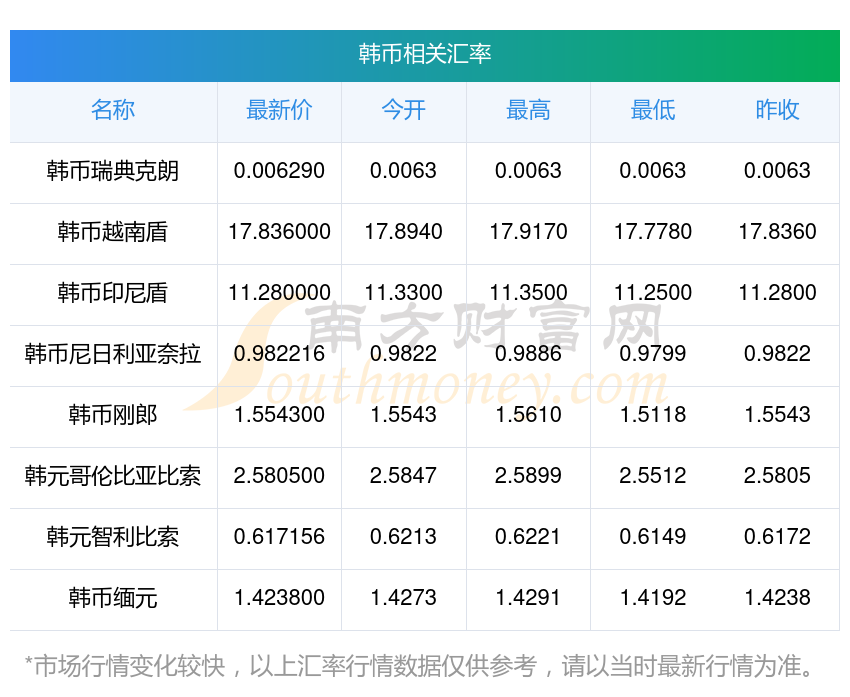 根据2025年12月14日汇率,韩币兑换肯尼亚先令汇率最新0.087430,今开0.0877,昨收0.0874,最高0.0878,最低0.0872。