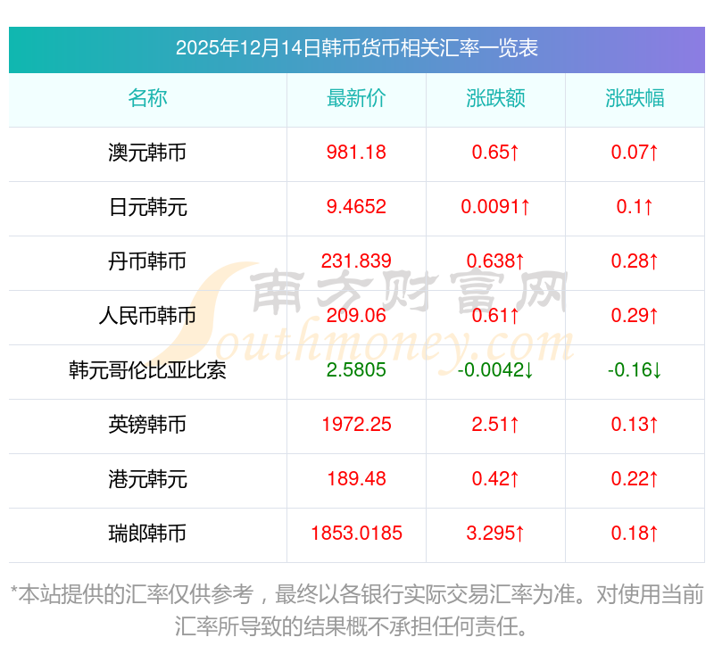 2025年12月14日韩币相关汇率查询