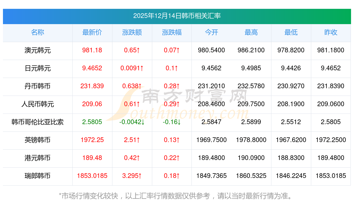 本周韩币汇率,韩币对瑞典克朗汇率价多少?2025-12-14