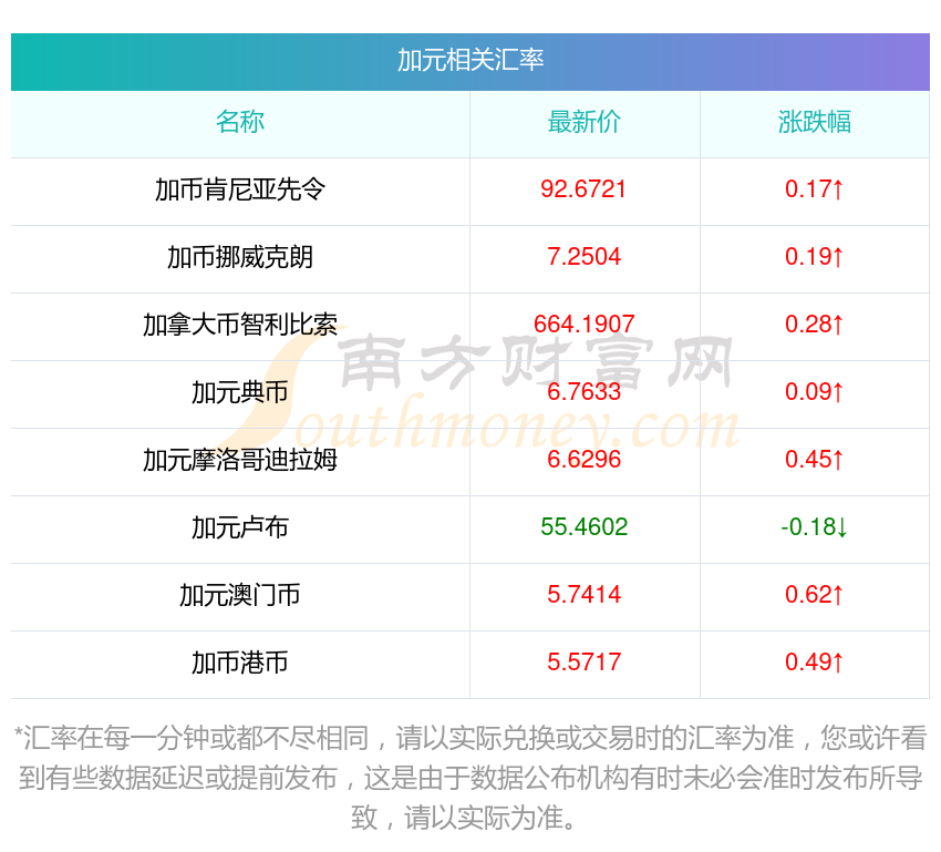 南方财富网为您提供加元对刚币汇率最新价格详情。