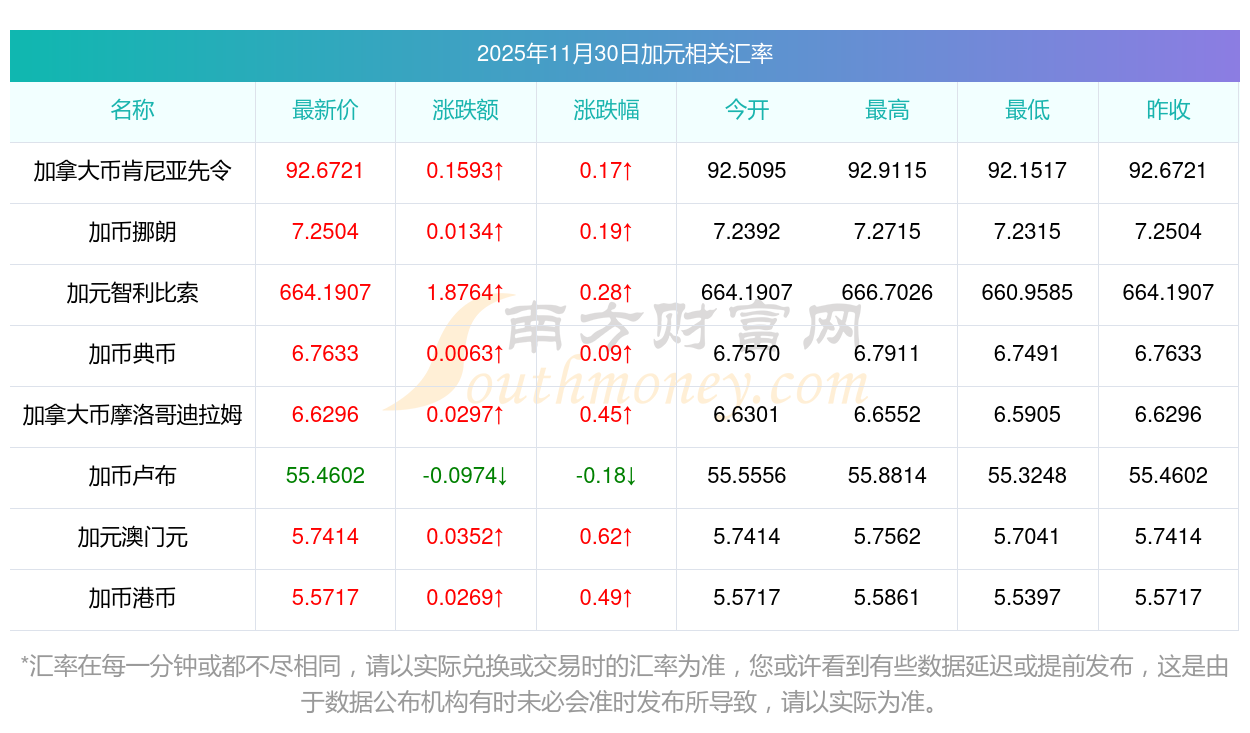 根据2025年11月30日汇率计算,CAD兑换UYU汇率最新价28.256100,今开价28.2561,昨收价28.2561,最高价28.5217,最低价28.2308。