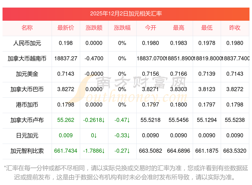 根据2025年12月2日汇率,加元兑换波兰兹罗提汇率最新2.605600,今开2.6030,昨收2.6031,最高2.6121,最低2.6015。