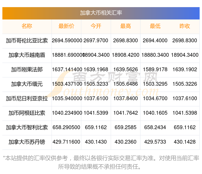 南方财富网为您提供加拿大币对苏丹镑汇率最新价格详情。