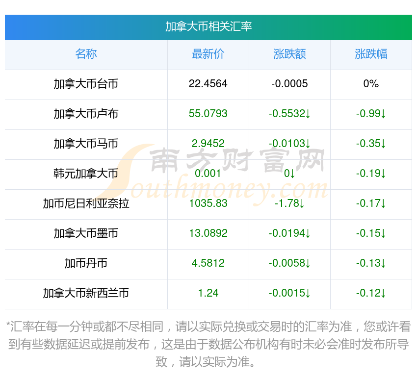 南方财富网为您提供加拿大币对澳门币汇率最新价格详情。