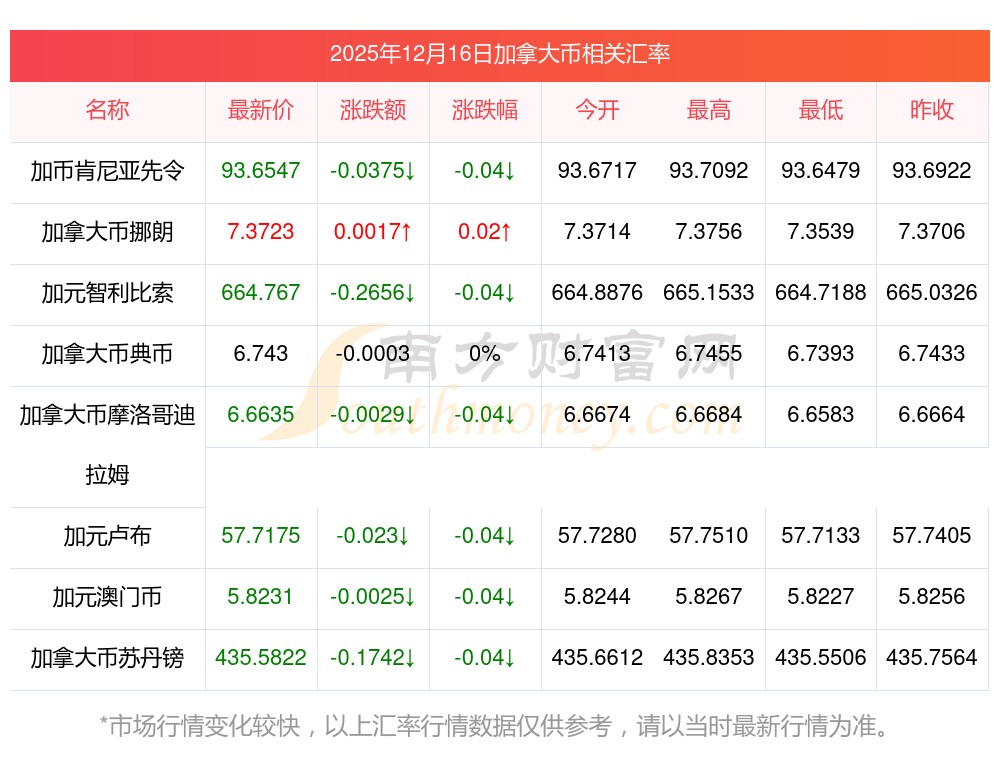 2025年12月16日加拿大币相关汇率查询