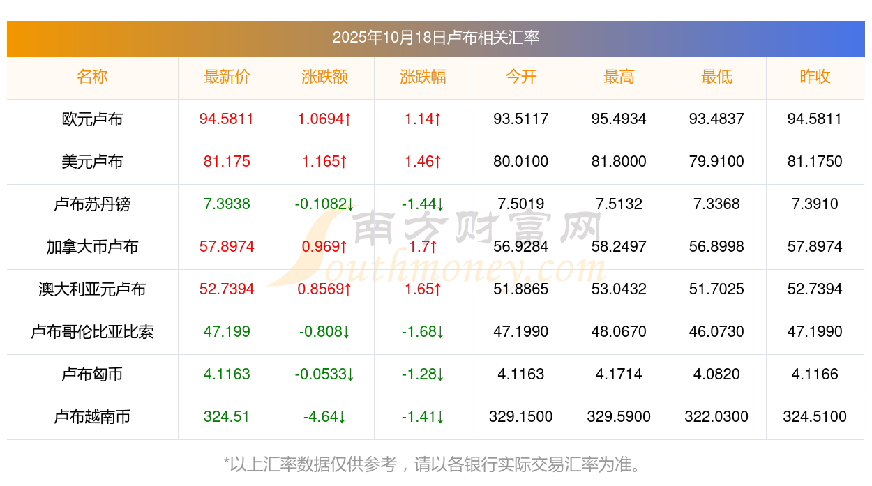 2025年10月18日卢布相关汇率查询