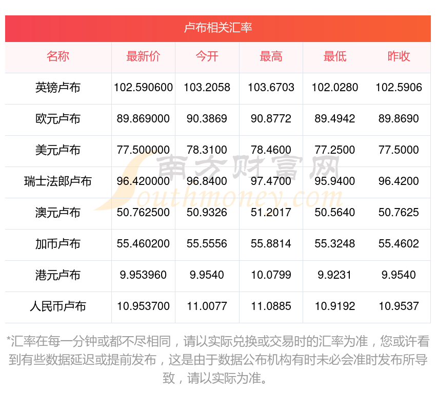 根据2025年11月30日汇率计算,卢布兑换哥伦比亚比索汇率最新价48.352000,今开价47.8310,昨收价48.3520,最高价48.4580,最低价47.7100。