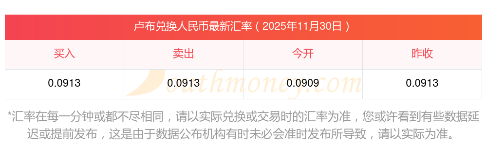今日卢布兑换人民币价位表一览(2025年11月30日)