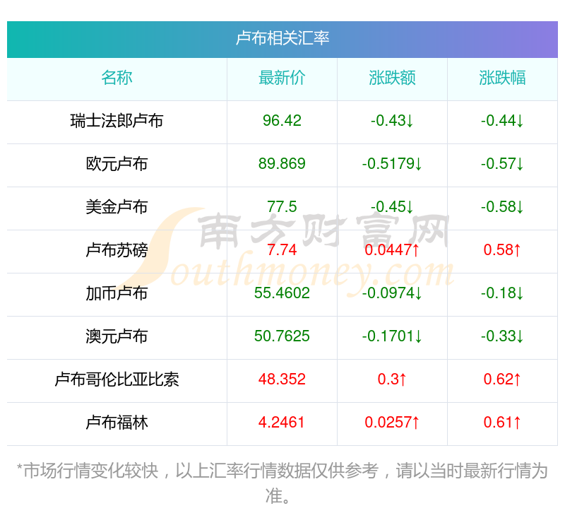 南方财富网为您提供卢布对苏磅汇率最新价格详情。