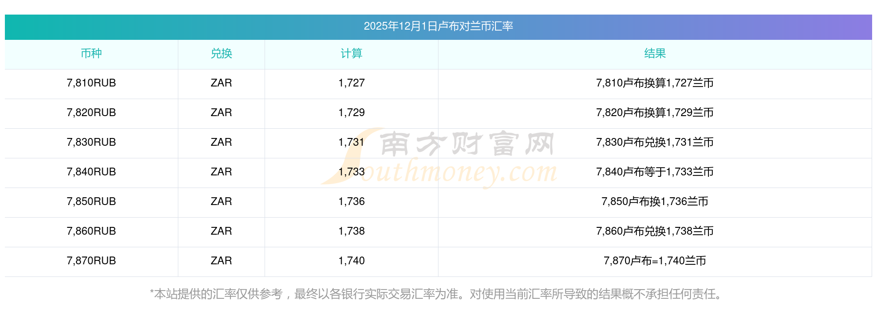 南方财富网为您提供卢布对兰币汇率最新价格详情。