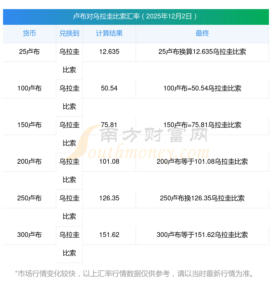 今天卢布兑乌拉圭比索汇率今日查询_各国货币在线转换2025-12-2
