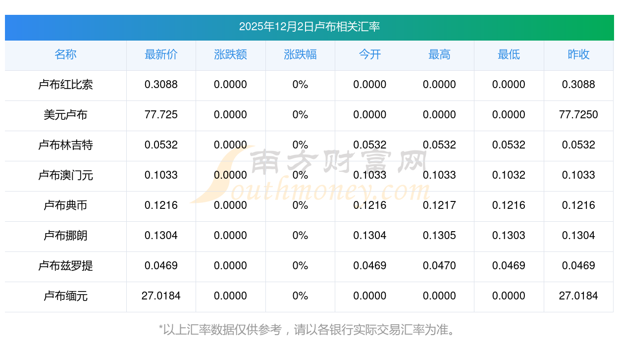 2025年12月2日卢布相关汇率查询