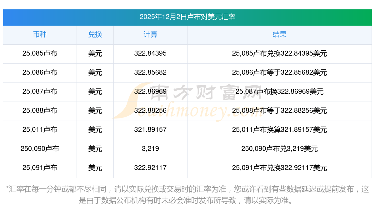 2025年12月2日汇率行情:13卢布对美元汇率多少