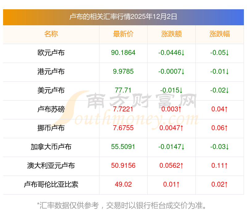 2025年12月2日最新汇率一览表: