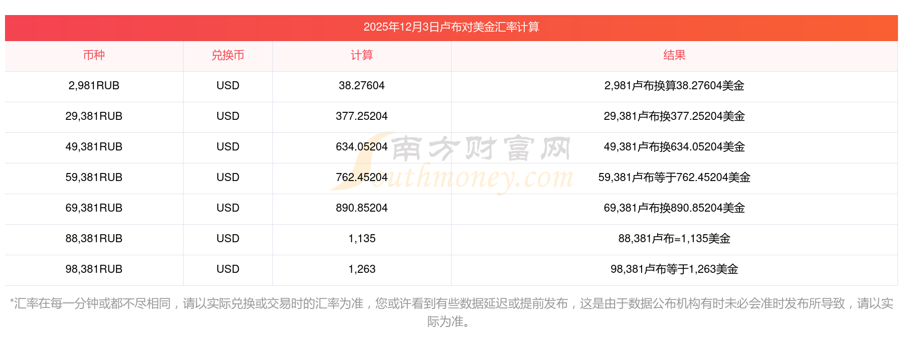 今天的汇率多少_卢布转换美金计算多少?12-03