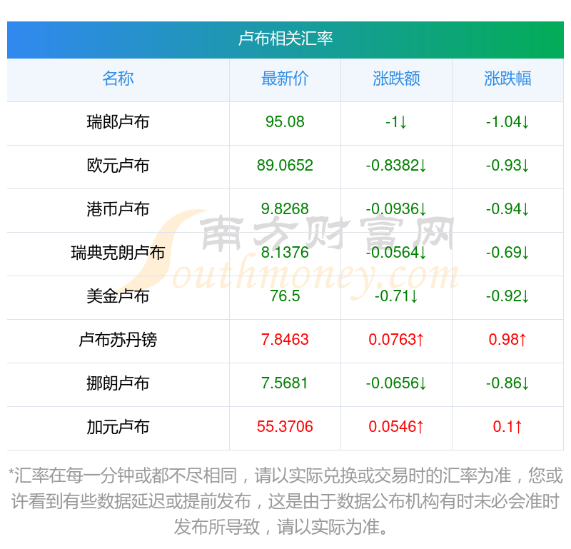南方财富网为您提供卢布对福林汇率最新价格详情。