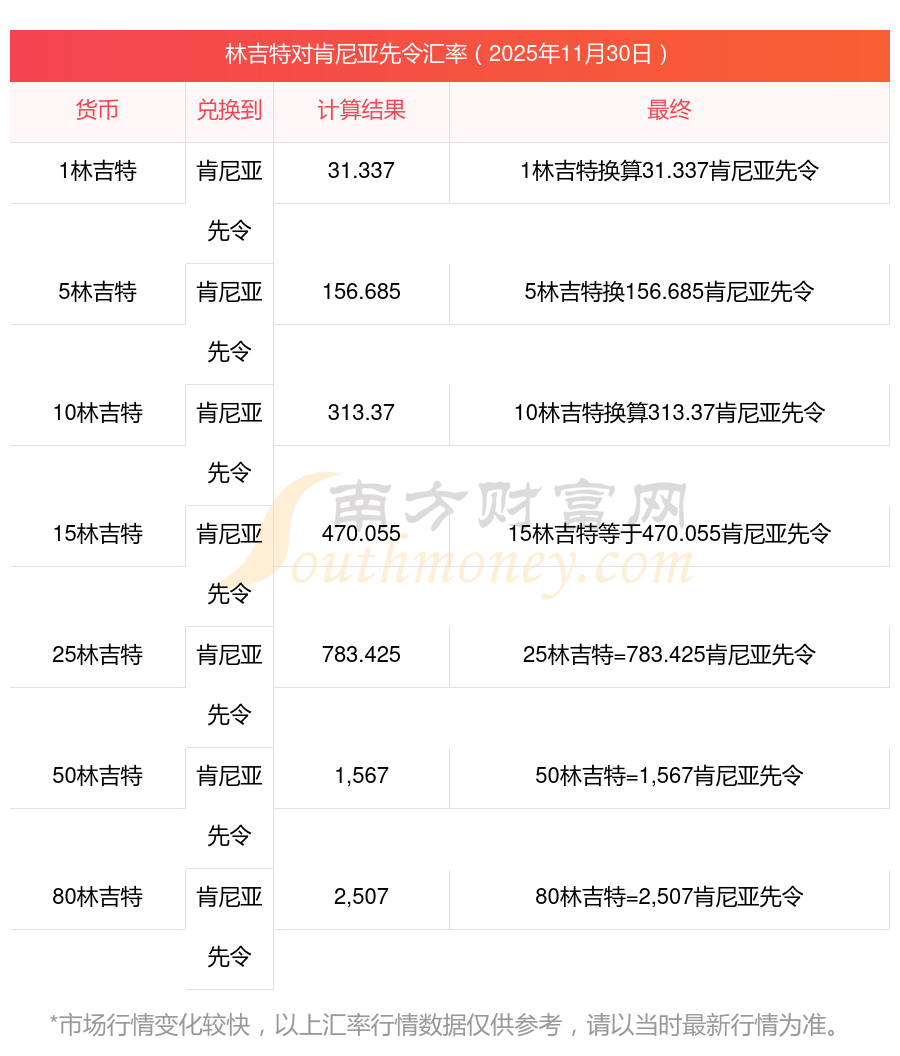 南方财富网为您提供林吉特对肯尼亚先令汇率最新价格详情。