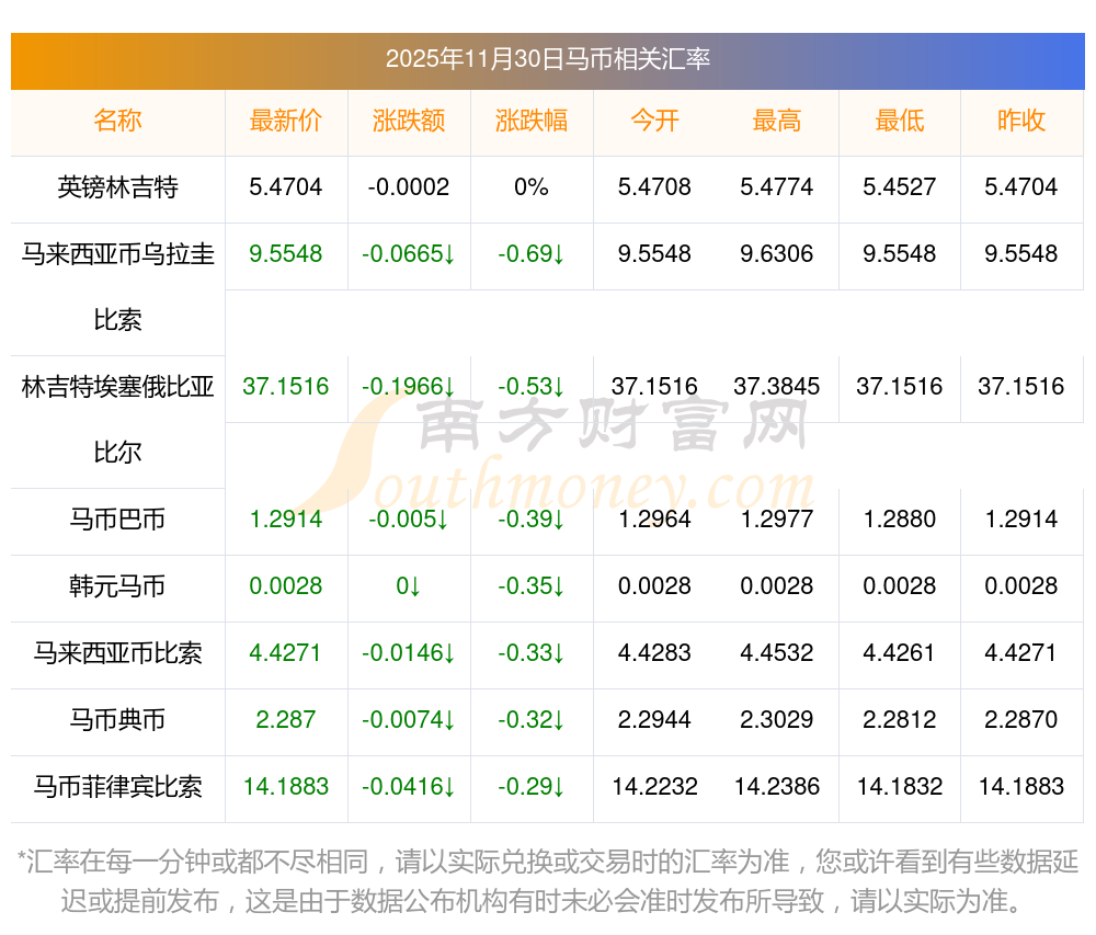 根据2025年11月30日汇率计算,MYR兑换SEK汇率最新价2.287000:今开价2.2944,昨收价2.2870,最高价2.3029,最低价2.2812。
