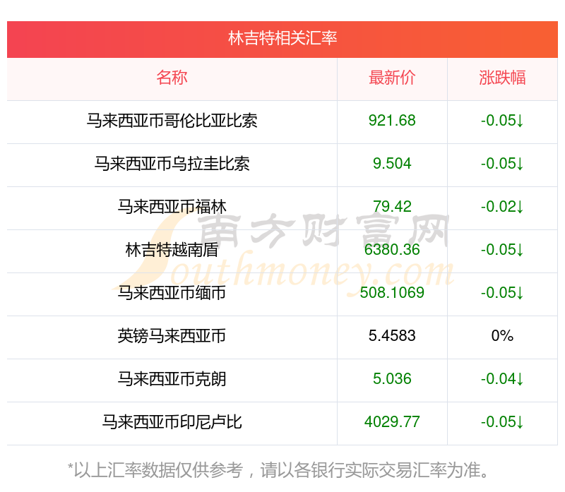 南方财富网为您提供林吉特对澳门元汇率最新价格详情。