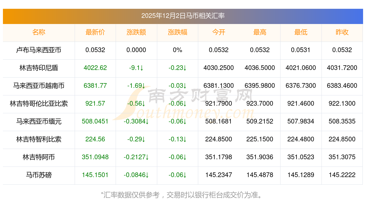 2025年12月2日马币相关汇率查询