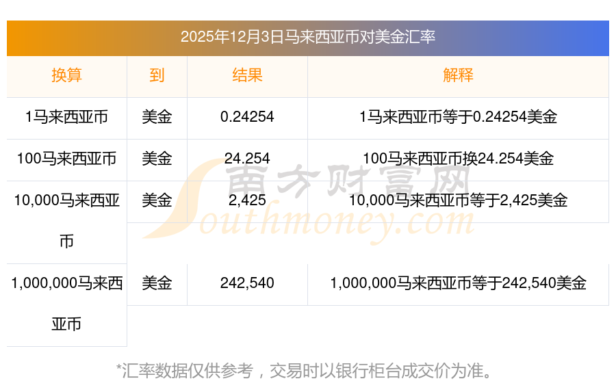 南方财富网为您提供马来西亚币对美金汇率最新价格详情。