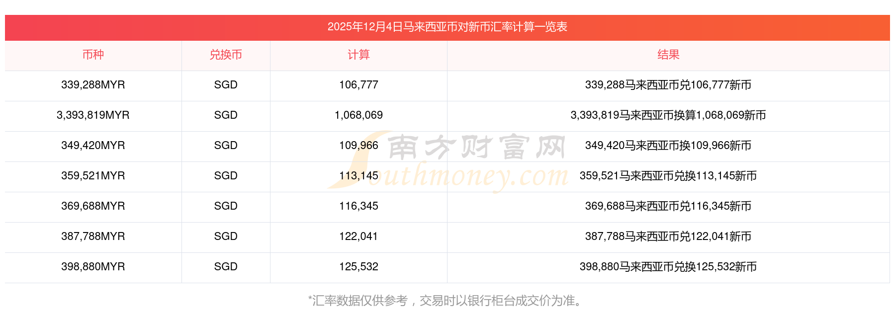 南方财富网为您提供马来西亚币对新币汇率最新价格详情。