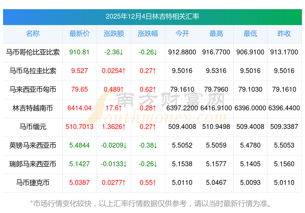2025年12月4日林吉特相关汇率查询