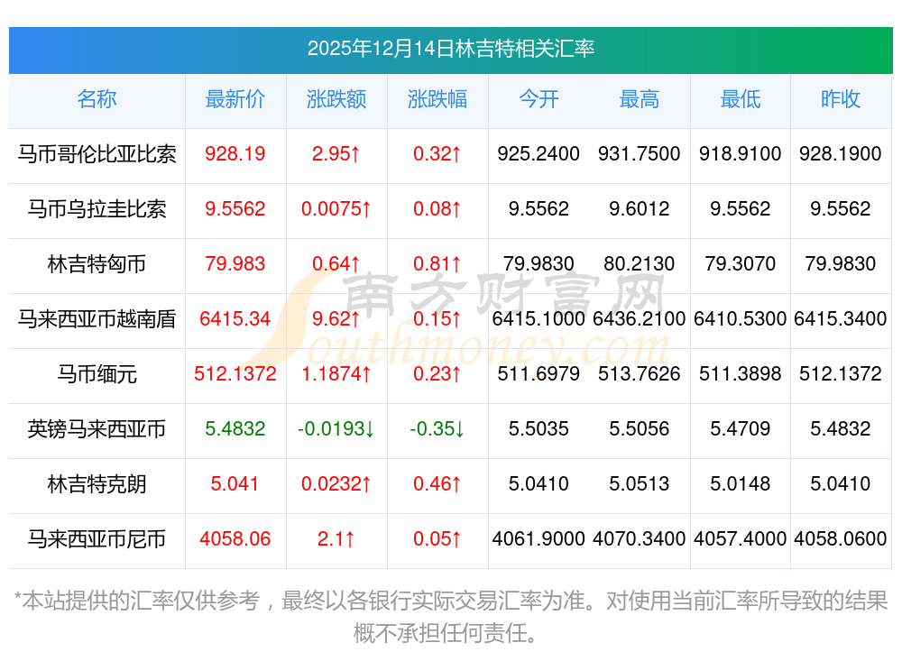 根据今天2025年12月14日汇率计算,MYR兑换FJD汇率最新价0.554200,今开价0.5529,昨收价0.5542,最高价0.5559,最低价0.5529。