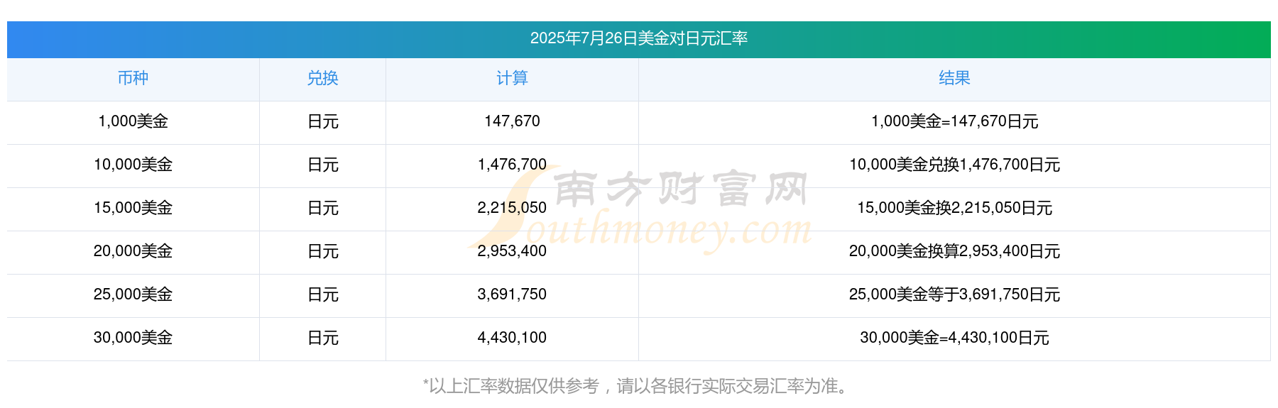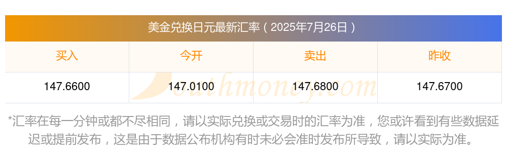 日元今日汇率实时查询 100美金对日元汇率7-26