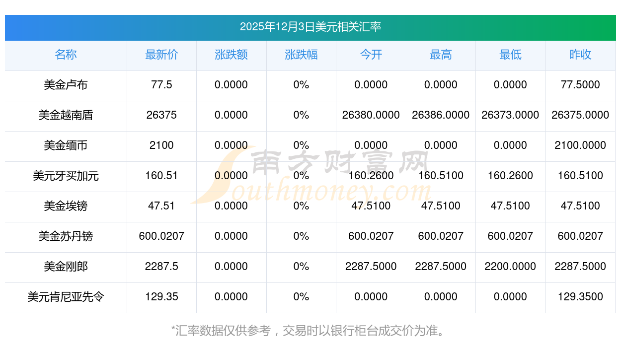 2025年12月3日美元相关汇率查询