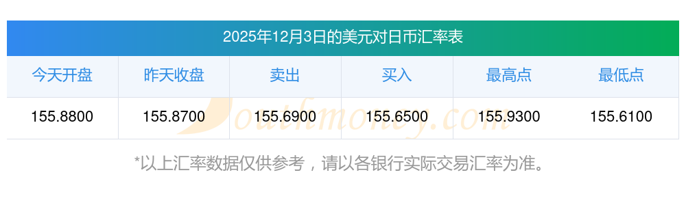 日币今日汇率实时查询 110美元对日币汇率12月3日