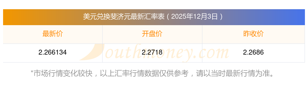 今日斐济元汇率调整:美元兑换斐济币汇率一览表(2025-12-3)