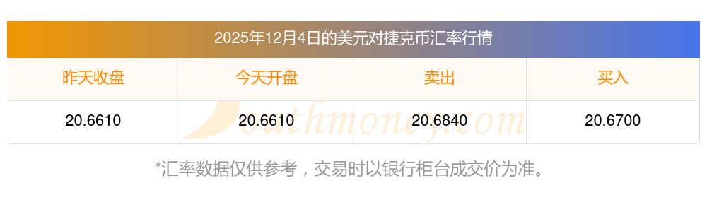今日捷克币汇率行情:美元兑克朗汇率多少(2025年12月4日)