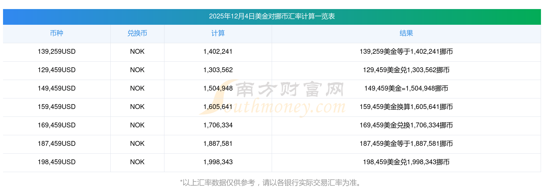 2025年12月4日美金与挪币的兑换汇率计算如下: