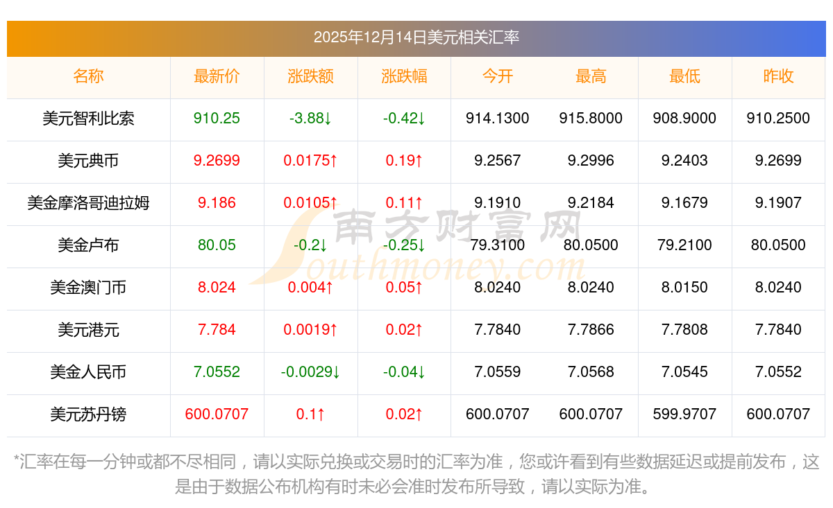 根据今天2025年12月14日汇率计算,USD兑换SEK汇率最新价9.269900,今开价9.2567,昨收价9.2699,最高价9.2996,最低价9.2403。