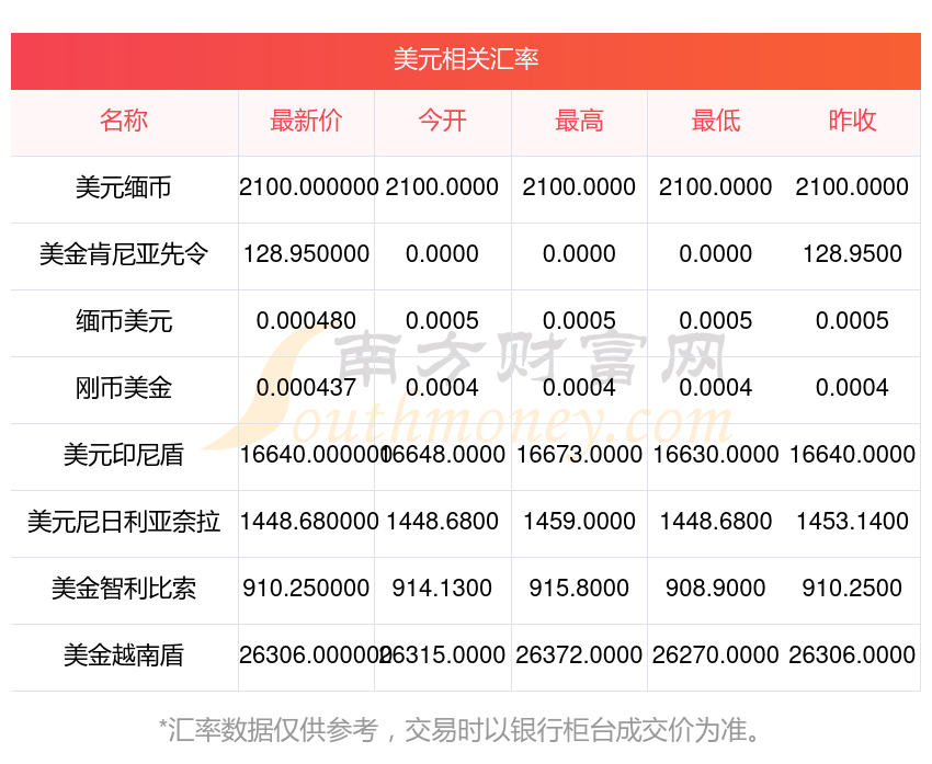 本站提供的汇率仅供参考,最终以各银行实际交易汇率为准。对使用当前汇率所导致的结果概不承担任何责任。
