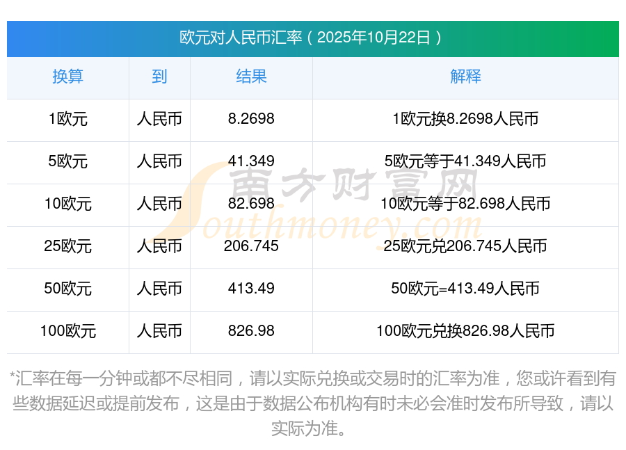 南方财富网为您提供欧元对人民币汇率最新价格详情。