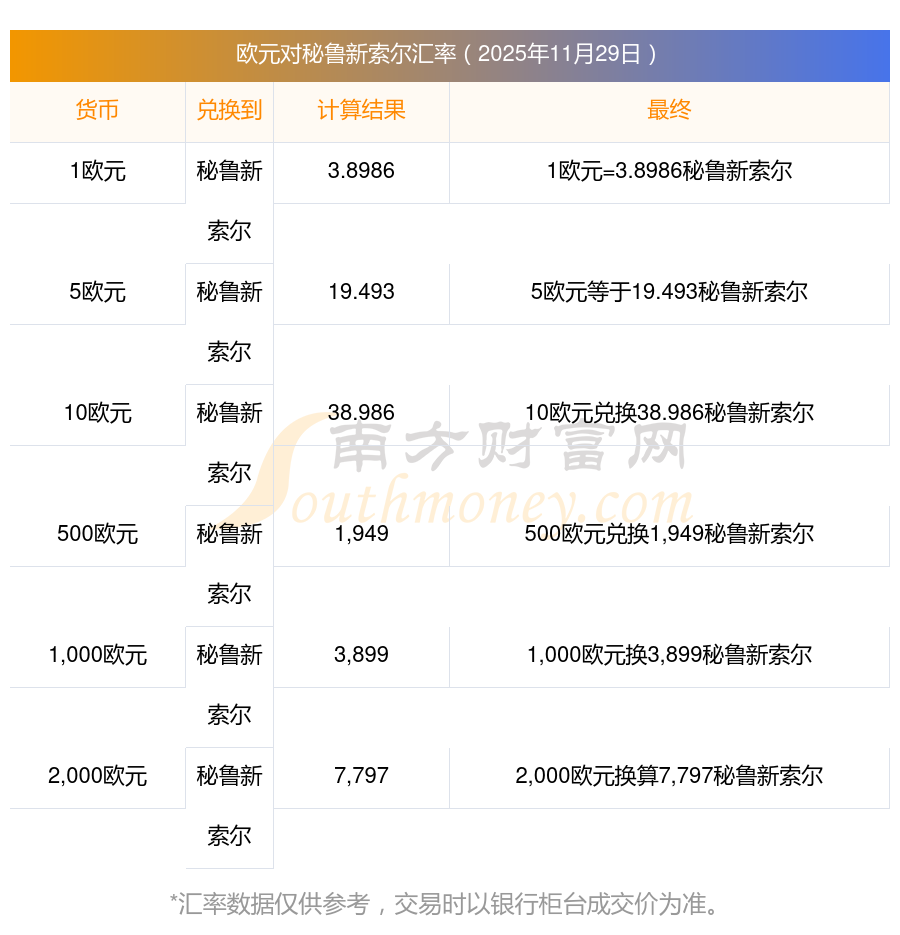 查询_2025年11月29日欧元兑换秘鲁新索尔汇率