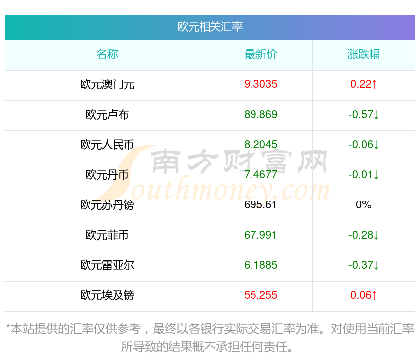 南方财富网为您提供欧元对典币汇率最新价格详情。
