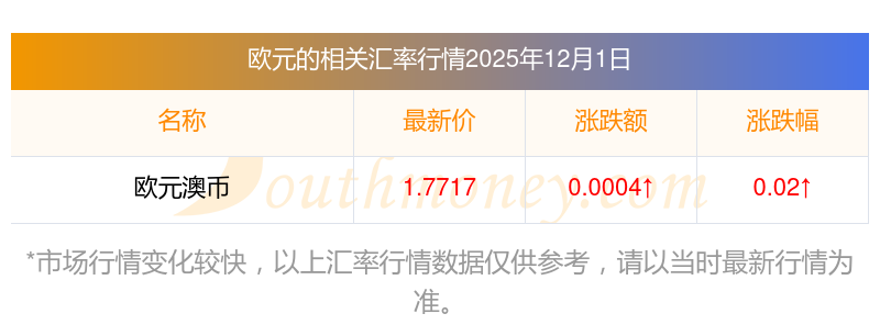 根据2025年12月1日汇率计算,EUR兑换AUD汇率最新价1.771700,今开价1.7713,昨收价1.7713,最高价1.7749,最低价1.7700。