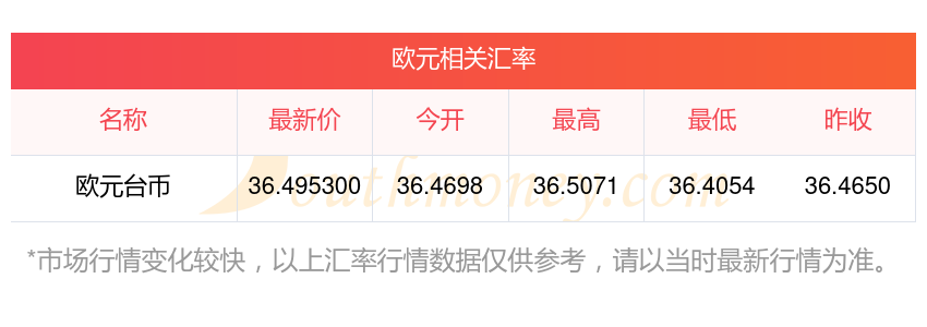 根据2025年12月2日汇率计算,EUR兑换TWD汇率最新价36.495300: