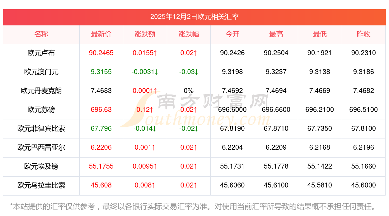 2025年12月2日最新消息,欧元兑换埃塞俄比亚比尔最新汇率为179.340000,今开为179.3240,昨收为179.3010,最高为179.3480,最低为179.2240。