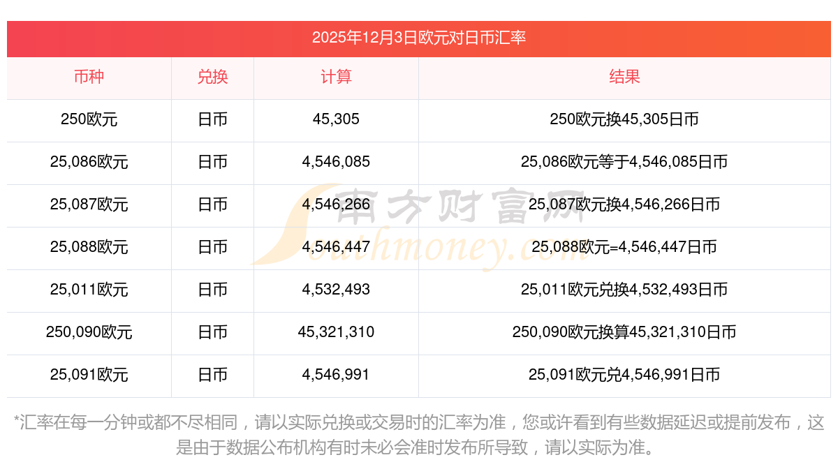 欧元对日币汇率价高吗 122欧元对日币汇率2025/12/03