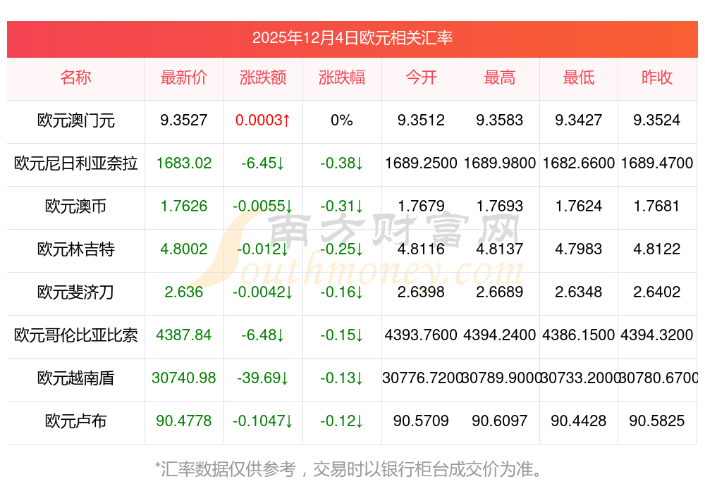 根据2025年12月4日汇率,欧元兑换捷克币汇率最新24.119000,今开24.1110,昨收24.1140,最高24.1240,最低24.1060。