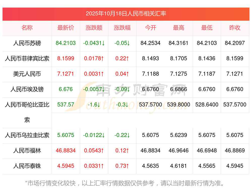 根据今天2025年10月18日汇率计算,CNY兑换SDG汇率最新价84.210277,今开价84.2534,昨收价84.2097,最高价84.3161,最低价84.2103。