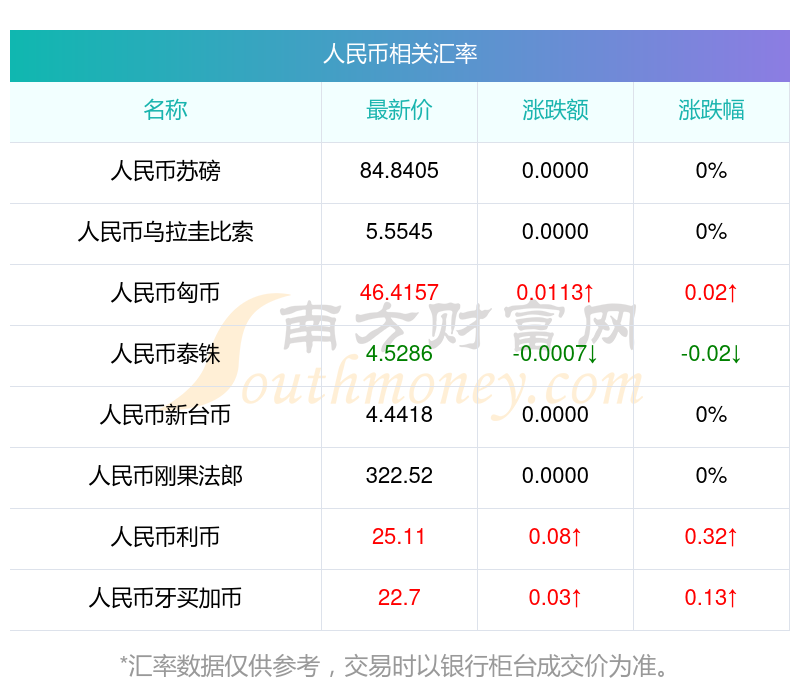 汇率在每一分钟或都不尽相同,请以实际兑换或交易时的汇率为准,您或许看到有些数据延迟或提前发布,这是由于数据公布机构有时未必会准时发布所导致,请以实际为准。
